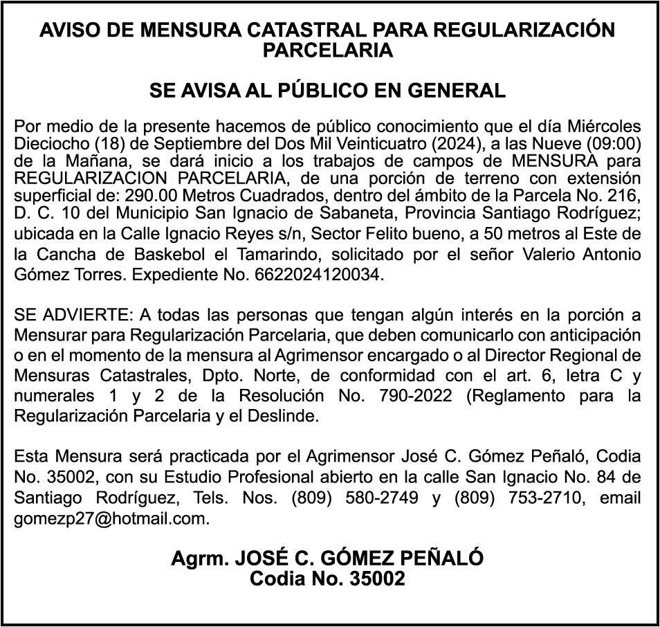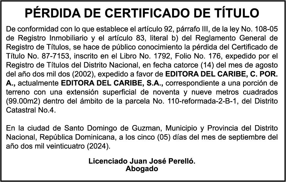 PERDIDA DE MATRICULA: De La Motocicleta, Placa K2243471, Chasis LFFWHV6D0M1801464, Marca SUPER GATO, Modelo LEAD 150, Color BLANCO, AñO 2021, a nombre de GLADYS ALTAGRACIA VARGAS , Ced. 03300144072
