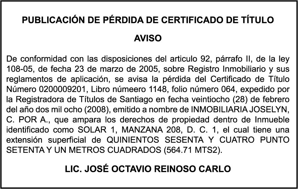 PERDIDA DE MATRICULA: Del Vehiculo, Placa N328108, Chasis LF3PCJ5006B010353, Marca X-1000, Modelo CG-125, Color ROJO, AñO 2006, a nombre de DOMINGO ANTONIO SUAREZ VILLAR, Ced. 05400934385