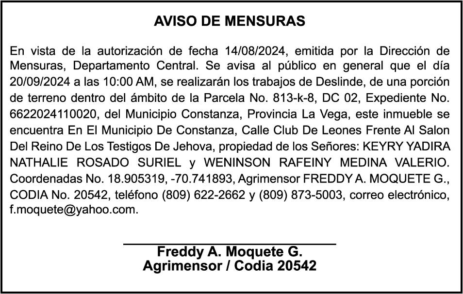 ES LO QUE TENGO, no me gusta decir te lo dije, pero el presidente no puede permitir que áreas vitales que nuestra Constitución le asigna al Poder Ejecutivo pasen al control de poderes foráneos. Abinader debe coger el mando y no cederlo. Su accionar está creando confusión en el manejo del tema migratorio, las relaciones exteriores, energía, salud, la educación y la Procuraduría General. Se nota que la voluntad del presidente está sometida al poder extranjero y a peticiones del empresariado local. Luis necesita ayuda. Leonel, Hipólito, Danilo deben sentarse con él para hacer un bloque que muestre unidad y fortaleza interna ante las presiones de afuera.