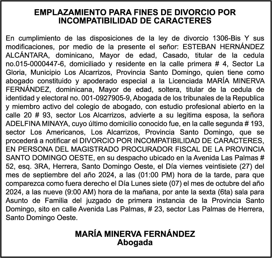 SE hace de público conocimiento la pérdida del Certificado Financiero número 841391410 emitido por Banco Popular Dominicano, S. A., a favor RUT BETEL RIVERA FIGUEROA, dominicana, mayor de edad, soltera, domiciliada y residente en esta ciudad, portadora de la Cédula de Identidad y Electoral número 4022555320-1, certificado expedido en fecha 14 de mayo de 2024 por el Monto (RD$436,017.92), mas intereses generados a la fecha.