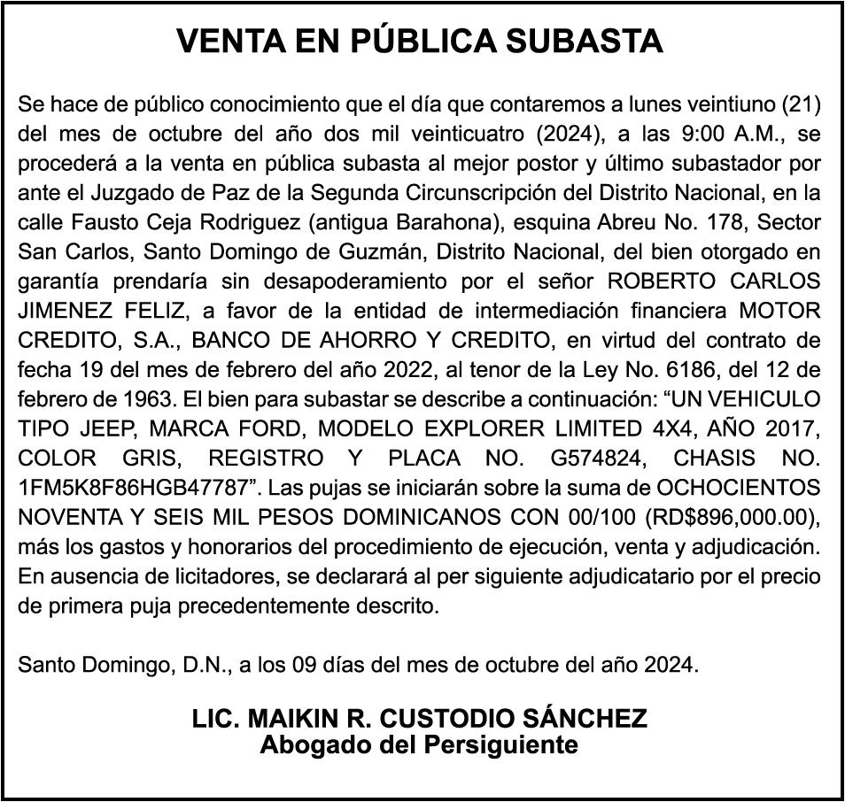 Automovil Privado HYUNDAI, Modelo SONATA N20, Color GRIS, Año 2012, Placa A747266, Chasis KMHEU41MBCA819440, a nombre de JOSE ALBERTO ROSARIO GUZMAN. SE hace de público conocimiento la pérdida del Certificado Financiero número 799257092 emitido por Banco Popular Dominicano, S. A., a CATHERINE JANILKIS DIONICIO DIONICIO, portadora de la Cédula de Identidad y Electoral número 002-0112621-6, certificado expedido en fecha 24 de octubre de 2016 por el Monto (RD$1,267,778.15), mas intereses generados a la fecha.