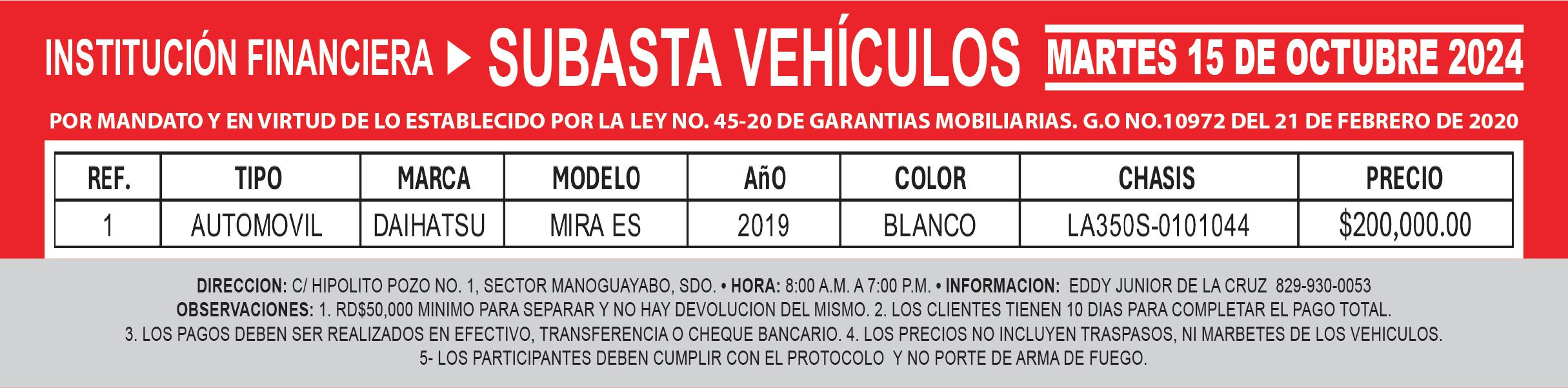 PERDIDA DE MATRICULA Autobús Privado DAIHATSU, Modelo HIJET, Color blanco, Año 2013, placa I093180, Chasis S331V0096784, a nombre de WILLIAM MERCEDES COTES.