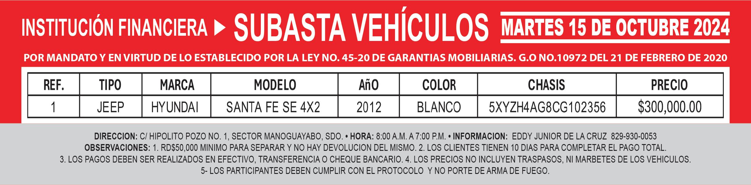 carga NISSAN, modelo TITAN, Color rojo, Año 2006, Placa L299859, Chasis 1N6BA06A46N514397, a nombre de EURY JOEL DE LA CRUZ DE LA ROSA.