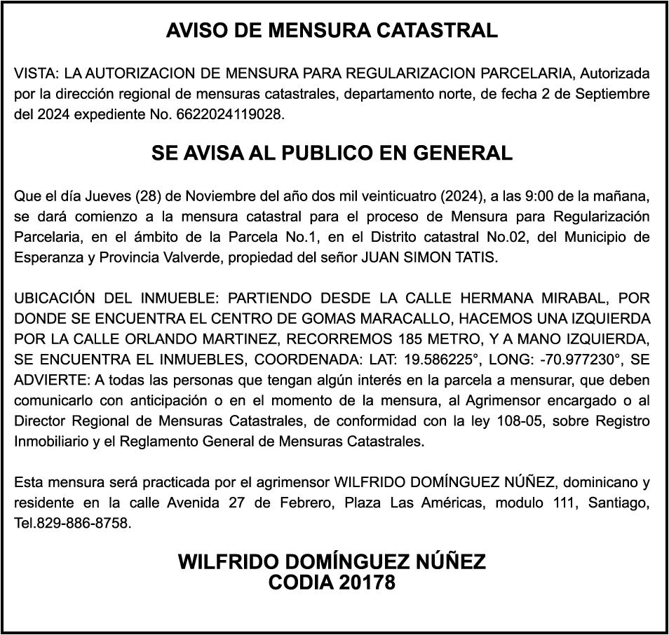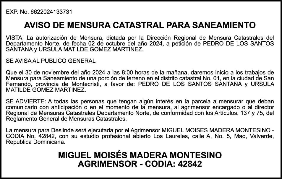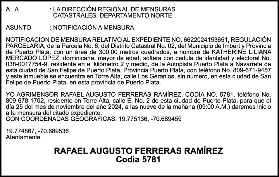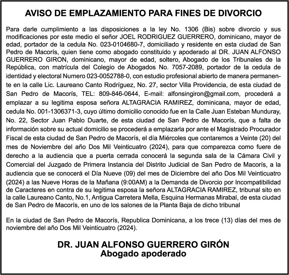 SE hace de público conocimiento la pérdida del Certificado Financiero número 841901622 emitido por Banco Popular Dominicano, S. A., a DAYELI RODRIGUEZ DOMINGUEZ, portadora de la Cédula de Identidad y Electoral número 402-3025762-4, certificado expedido en fecha 6 de junio de 2024 por el Monto (RD$20,895.35), mas intereses generados a la fecha.