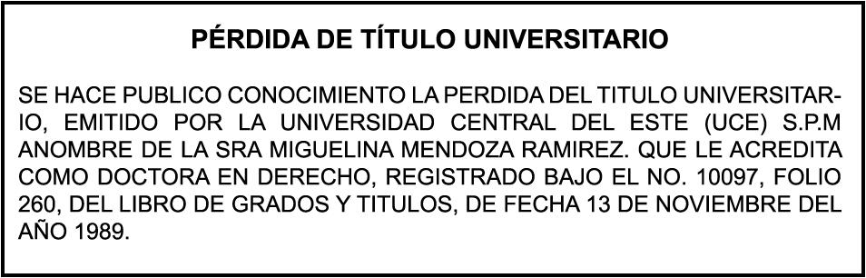 PERDIDA Certificado de Titulo, Identificado por la matricula 3000135199, dentro de un inmueble identificado como 502509410697, de Higüey, con una superficie de 1037.18 Mts4, a nombre de Bolívar Guerrero Cedeño.