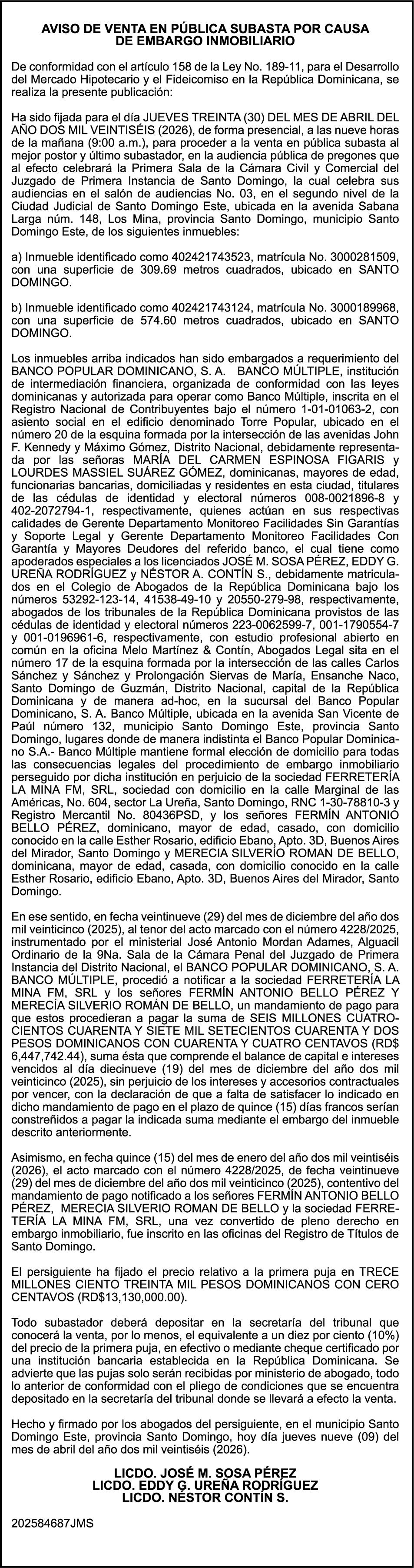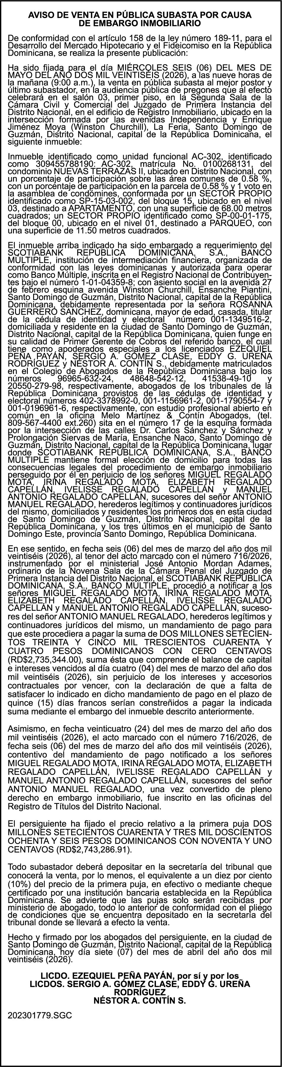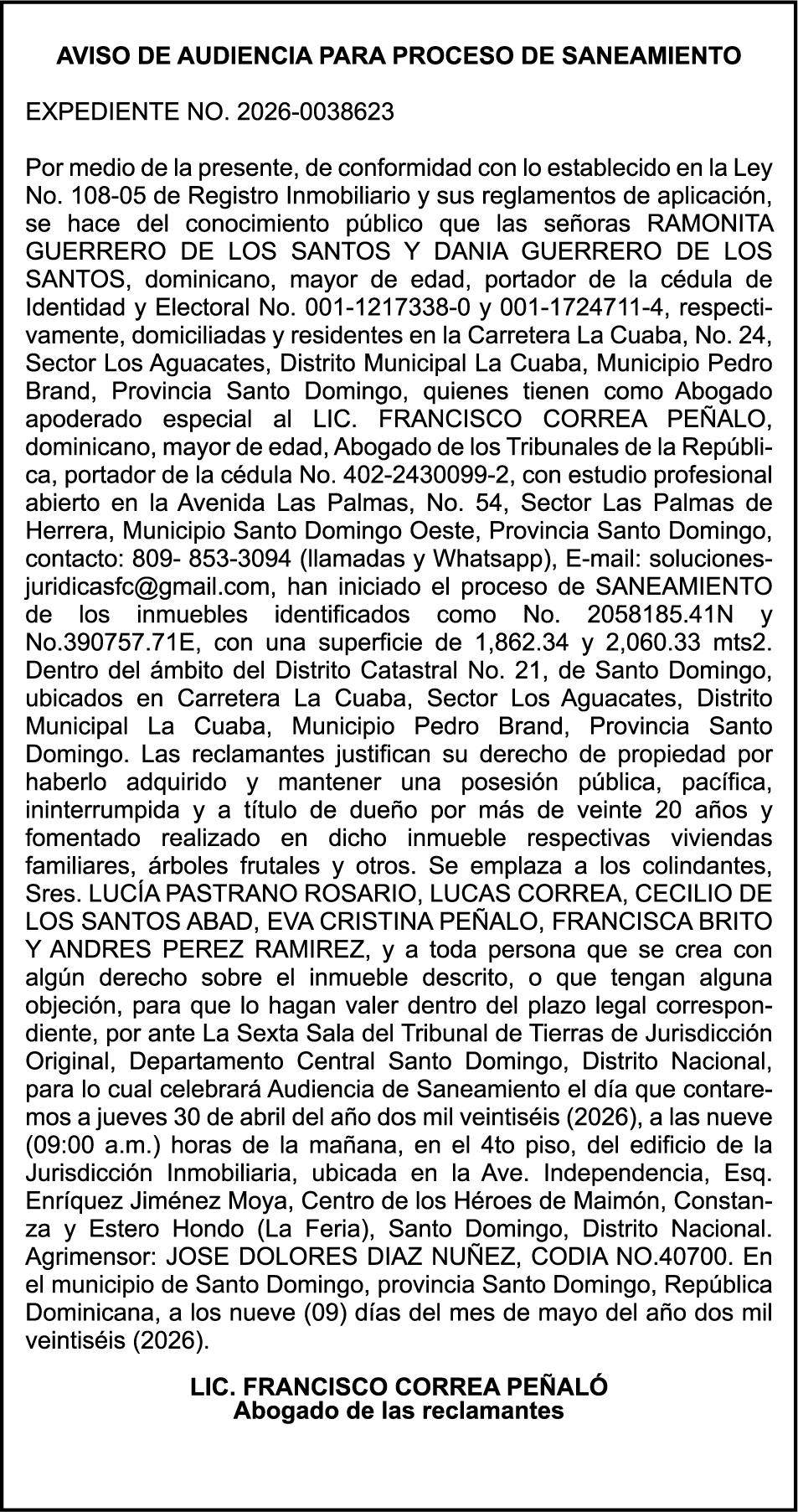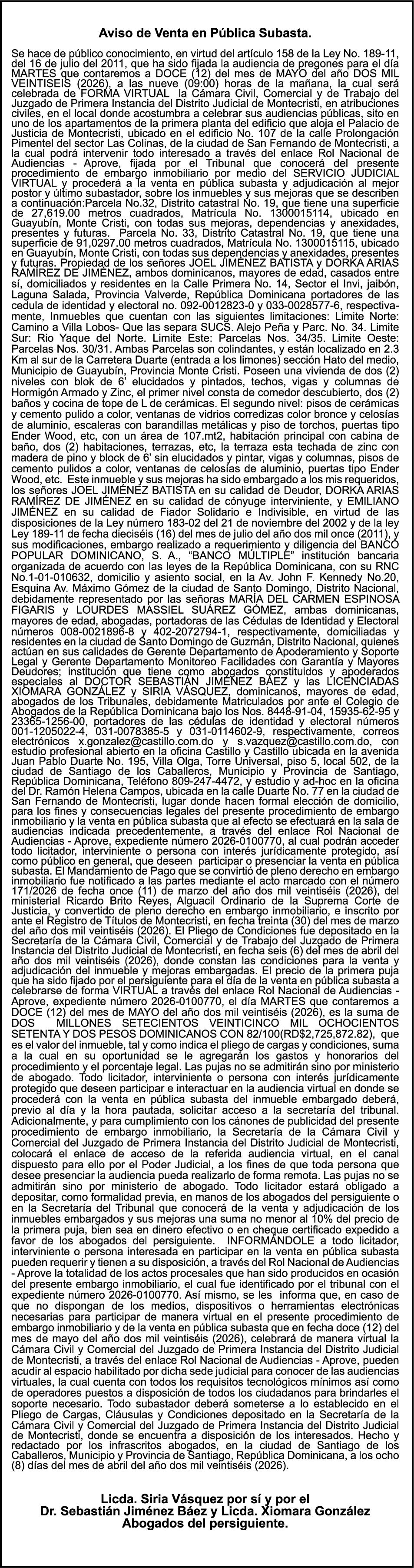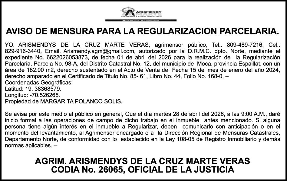 PERDIDA DE PLACA No. L329487, CARGA MITSUBISHI, color BLANCO, año 2006, chasis FE635EA48653, a nombre de ADVENTURE BOOGIES SRL AVISO TRASPASO DE EMBARCACION.EL señor MARIO MERCEDES, traspasa el bote de pesca de nombre;LUCIA-IV” matricula No. BP-L180-861SBS, de 19.0 pies de eslora, para que en lo adelante figure a nombre del señor RODOLFO FRANCO GUZMAN , como nuevo ropietario.
