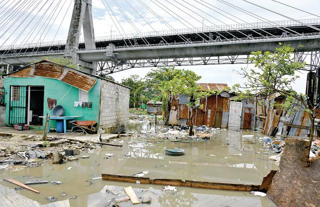 ron el rápido colapso del drenaje urbano y la acumulación de grandes volúmenes de agua en calles y avenidas. Con cañadas desbordadas, llenas de basura y con olores fétidos que atentan con-