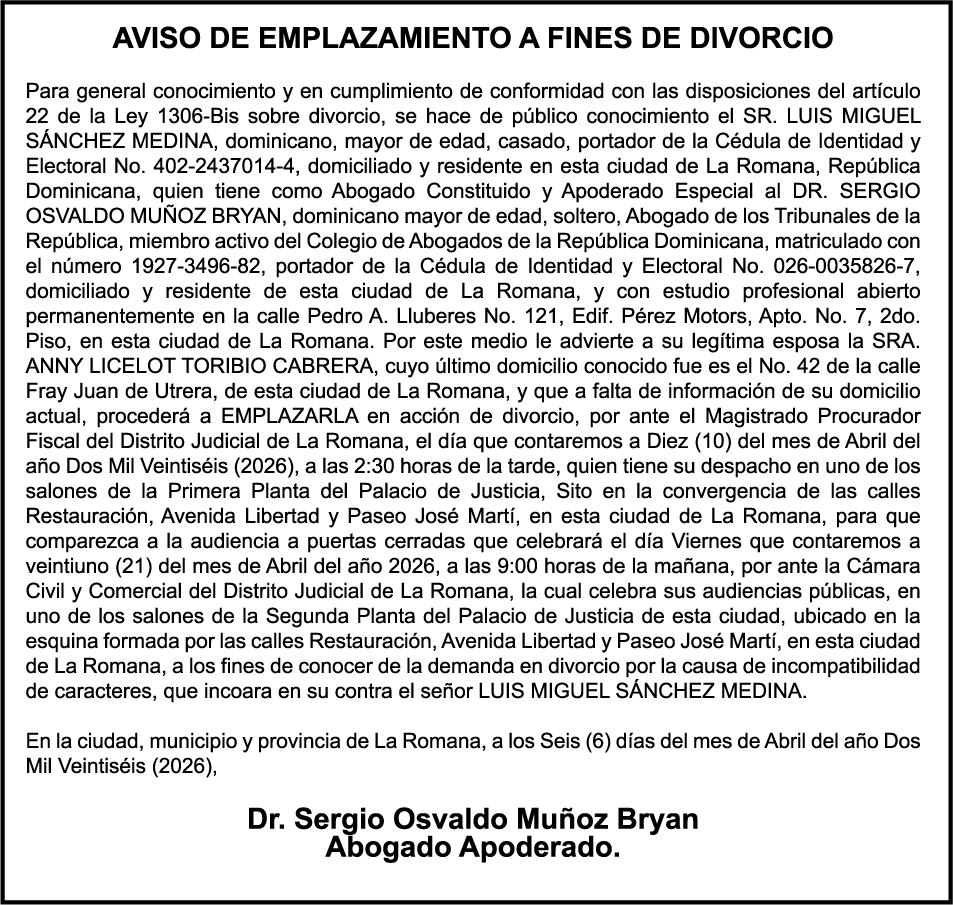 10:00 A.M. Acto inaugural de la Conferencia del Poder Judicial 2026. Ciudad Judicial de Santo Domingo Este, Av. Sabana Larga.