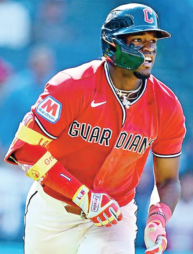El dominicano Angel Martínez conectó ayer un Grand Slam y fijó un récord personal de cuatro hits, mientras que el novato Chase DeLauter aportó un doble de dos carreras para impulsar a los Guardianes de Cleveland a la victoria 10-2 sobre los Reales de Kansas City. Martínez disparó un batazo de 374 pies hacia el jardín derecho ante Steven Cruz