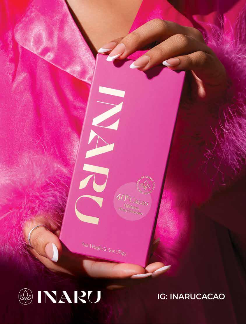 esde el primer bocado, el chocolate se derrite con suavidad, liberando notas de cacao que brillan con matices afrutados y despiertan los sentidos. Por un instante, todo parece detenerse. Es un lujo que no se exhibe, sino que se siente y conecta profundamente con quien lo saborea. Fue en ese instante que nació INARU, ofreciendo una manera distinta de disfrutar el chocolate, una experiencia que celebra la pureza de sus ingredientes, la conciencia detrás de su creación y el arte que transforma cada tableta en un instante de placer absoluto.Esa es la esencia de INARU, una firma dominicana que transforma el cacao en una experiencia sensorial con propósito.