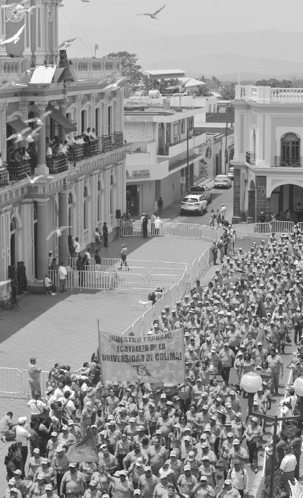 tarios,encabezadosporelRector de la U de C, José Eduardo HernándezNava,yporelsecretariogeneraldel SUTUC,LuisEnriqueZamoranoManríquez, participaronestemiércolesenelDesfilepor elDíaInternacionaldelTrabajo,conuncontingente que mostró un carácter ordenado y deunidadenlascallesdelcentrodelaciudad capital.Al culminar el desfile, los universitarios se trasladaron al casino del Sindicato donde celebraron su día y tuvieron la presencia del gobernador José Ignacio Peralta Sánchez. pp