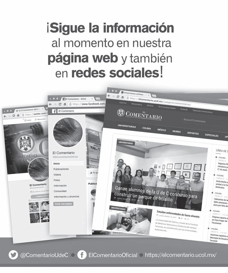 dad de Colima, Máxima Casa de Estudios en el estado; a pesar de los esfuerzos realizados por abrir nuevos espacios. En una entidad con una población de 12 y más años de 615 mil 516 (ENIGH, 2018), los números que reportó el año pasado la U de C para el ciclo 2018-2019, son por demás interesantes. El documento Numeralia 2018, indica que se cuenta con 9 programas de educación media superior; 103 programas de educación superior, distribuidos de la siguiente manera: 66 de licenciatura, 9 de especialidad, 20 de maestría y 8 de doctorado. Para el ciclo de referencia, se reportaron 28 mil 386 estudiantes, de los cuales el 54.8% eran mujeres y el 45.2% hombres. Para ese ciclo escolar, las y los estudiantes de primer ingreso fueron, en total, 9 mil 846. Cada vez más, se consolida en las personas la necesidad de cursar un programa de nivel superior, completar la formación con una licenciatura, hay quienes también contemplan en sus expectativas de formación el posgrado. Hay otras opciones de formación. Además del Tec de Colima y el Isenco, ya enunciadas, hay una variedad interesante de instituciones educativas que ofrecen sus servicios desde el ámbito privado; también con una variedad de programas y modalidades de estudio que favorecen el combinar