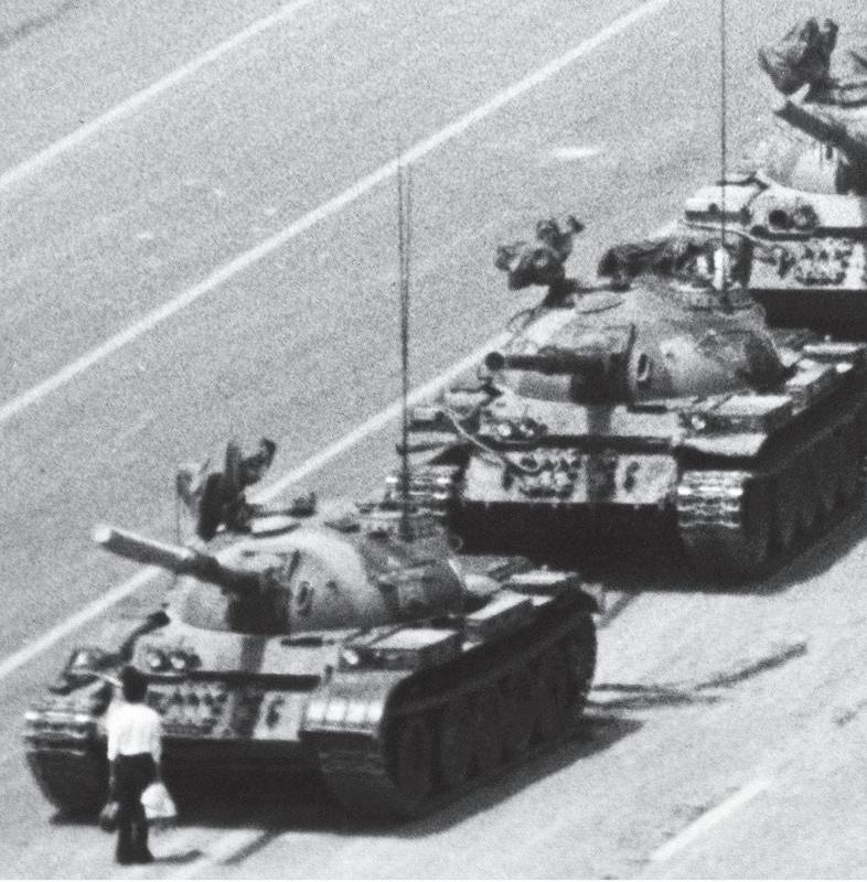 Aún hoy se desconoce qué le pasó al manifestante de pantalón negro y camisa blanca que detuvo una columna de tanques agitando frente a ellos una tela, mientras sostenía en la otra mano lo que parece una mochila. Un grupo de hombres lo alejó de la protesta.