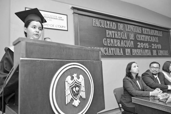 Antes de finalizar, les pidió continuar trabajando tanto como les sea posible: “Demuestren que los maestros de inglés sabemos hacer las cosas, que somos profesionales en la enseñanza del idioma. Nunca se rindan, no permitan que ningún obstáculo se cruce entre ustedes y su meta, y regresen a la UdeC cuando quieran, porque siempre será su casa y somos parte de su familia”.