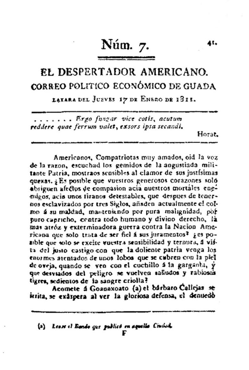 El Despertador Americano. Correo Político Económico de Guadalaxara. Desde ese momento germinó un medio impreso de vida breve pero de carácter explosivo, en el que las palabras de Miguel Hidalgo y Costilla provocaron chispas.