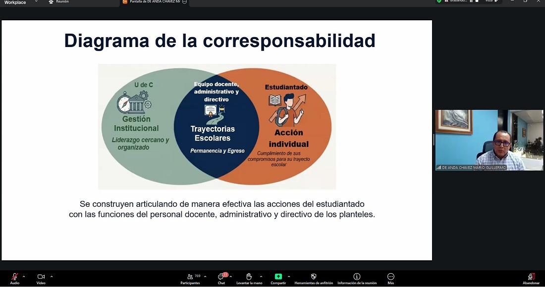 Por su parte, Mario Guillermo de Anda Chávez presentó de manera general las acciones y estrategias orientadas al fortalecimiento de las trayectorias escolares, destacando la importancia de una gestión institucional cercana y orga-