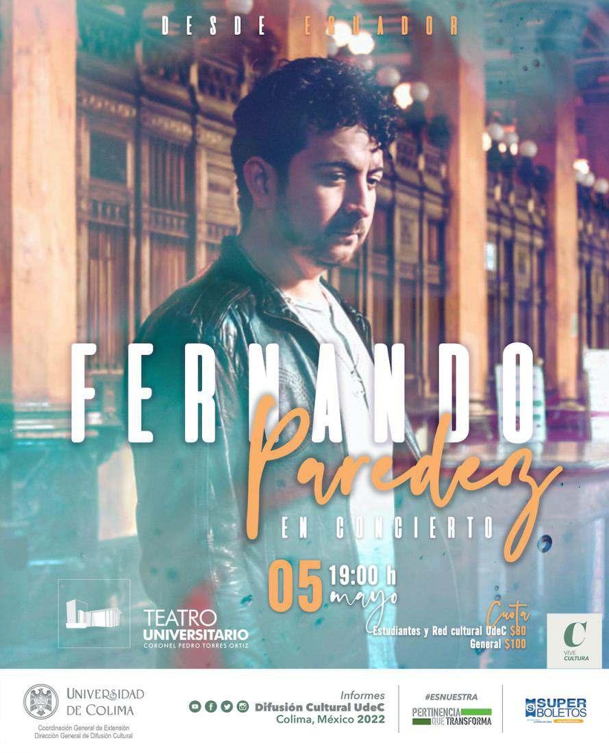 Desde Ecuador para México, Fernando Paredez (con zeta) prepara un concierto muy especial este 5 de mayo, a las 7 de la tarde, en el Teatro Universitario “Coronel Pedro Torres Ortiz”.