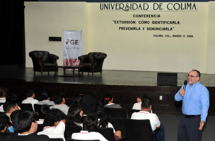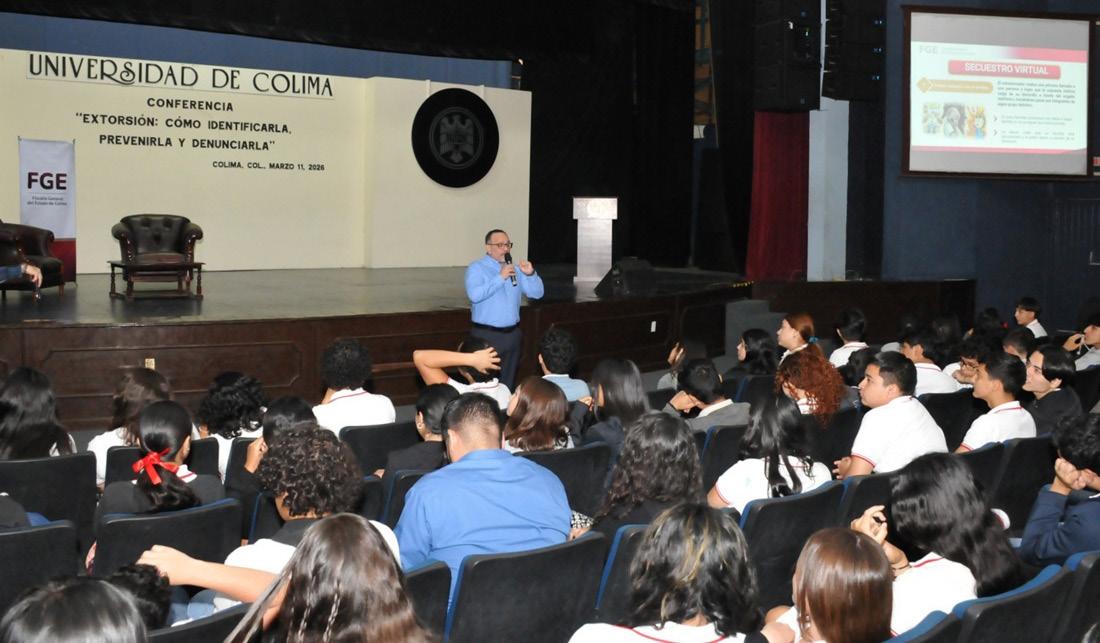 Al dictar la conferencia “Extorsión: Cómo identificarla, prevenirla y denunciarla”, ante estudiantes del Bachillerato 1 de la Universidad de Colima (UdeC), Bryant Alejandro García Ramírez, Fiscal General del estado de Colima, fue claro, ameno y dio ejemplos prácticos de cómo cuidarse y evitar no solo extorsiones, sino también secuestros virtuales.