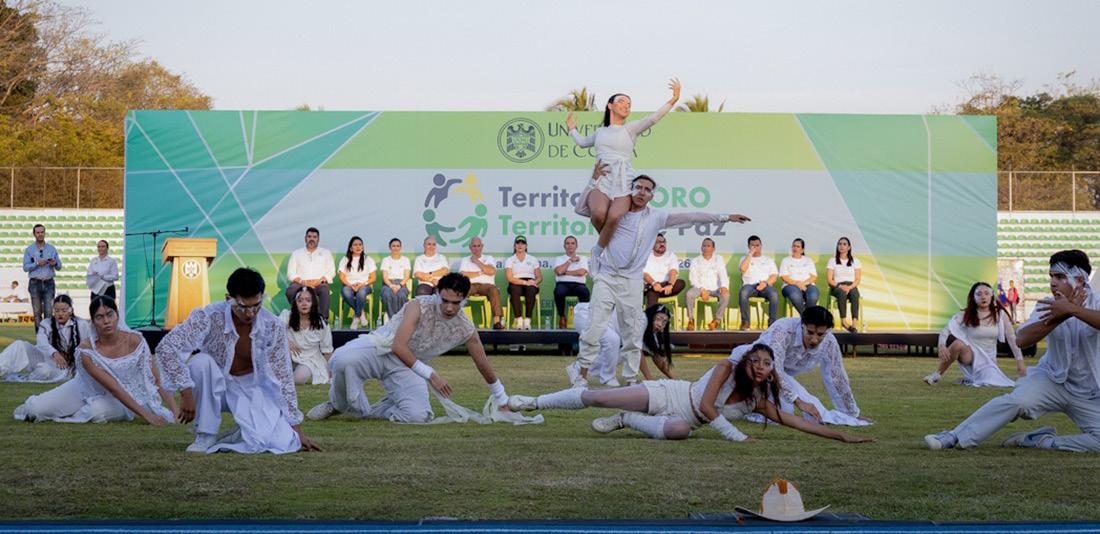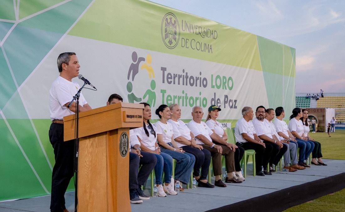 Como una iniciativa que busca fortalecer la convivencia respetuosa, el diálogo y la resolución de conflictos de manera pacífica dentro y fuera de la comunidad universitaria, se llevó a cabo, en el Estadio Olímpico Universitario, el arranque oficial del proyecto “Territorio Loro, Territorio de Paz” en el municipio de Colima, en un acto encabezado por el Rector Christian Jorge Torres Ortiz Zermeño. Al evento asistieron cientos de estudiantes, docentes, así como madres y padres de familia. Como parte de las actividades, estudiantes de la Licenciatura en Danza Escénica, bajo la dirección del maestro Ignacio Sán-