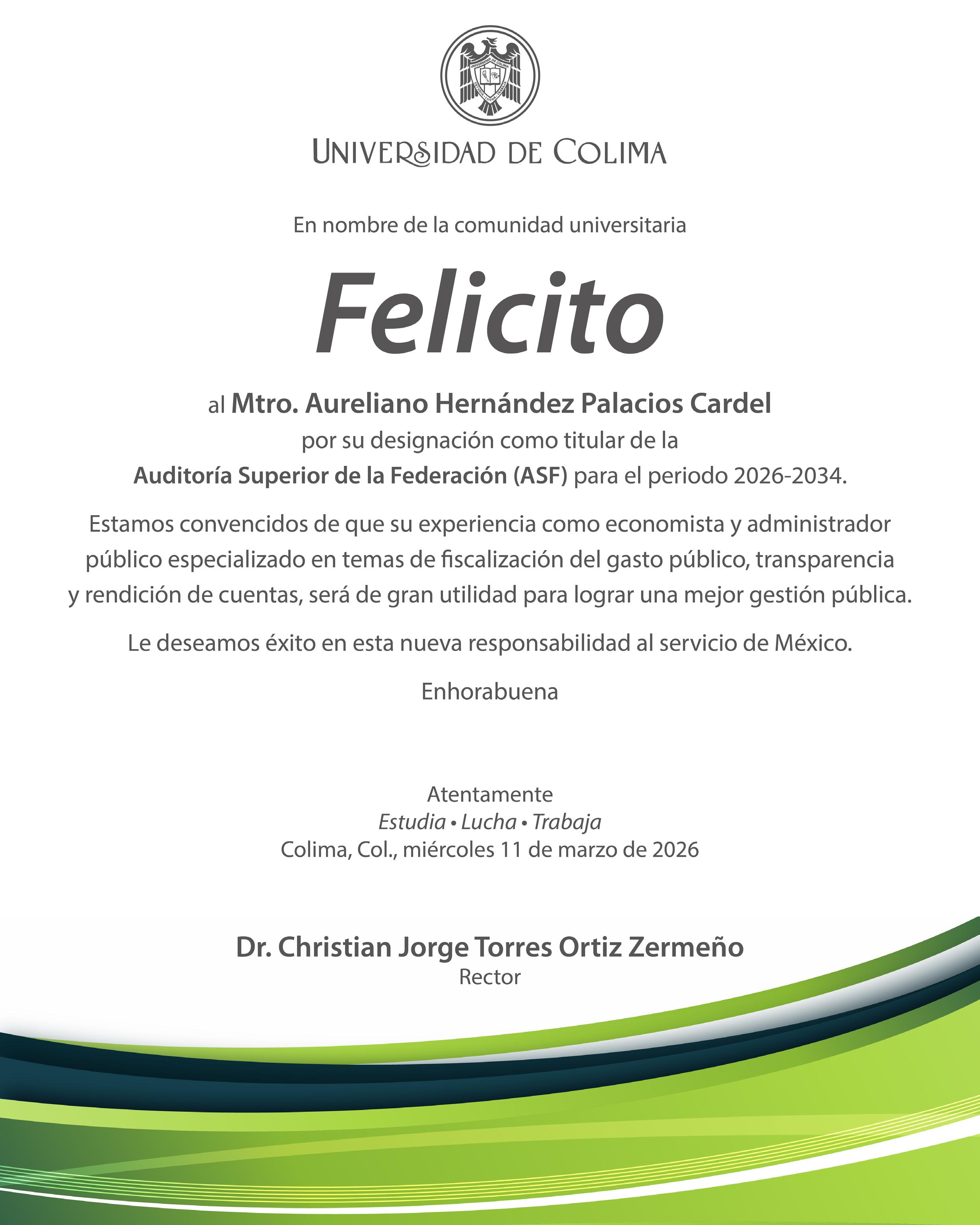 Finalmente, extendió una amplia felicitación a nombre del Gobierno del estado a la Universidad de Colima, por consolidarse como un espacio armónico y libre de violencia. “Gracias por demostrar que con responsabilidad social estamos garantizando un futuro de paz para la juventud colimense”.