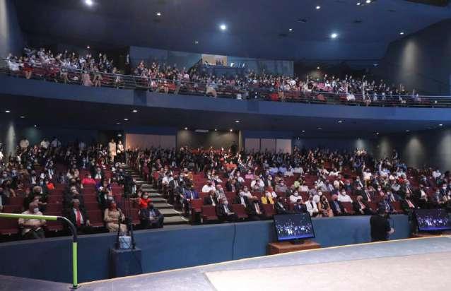 Al encabezar en el Teatro Universitario “Coronel Pedro Torres Ortiz”, el acto protocolario establecido por el Artículo 28, fracción VI, de la Ley Orgánica de la Universidad de Colima, y por el Artículo 10 del Reglamento Interior del Honorable Consejo Universitario, el máximo representante universitario invitó a los alumnos a reflexionar y asumir el papel histórico que les corresponde, apoyados en sus saberes, experiencias y capacidades, para que la sociedad logre transitar con éxito los desafíos de estos tiempos.