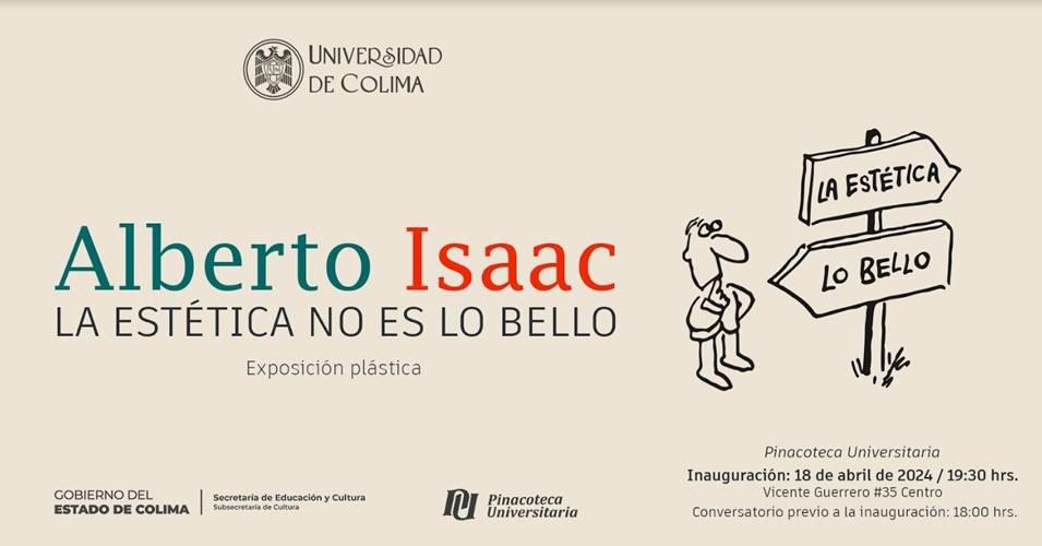 En el marco del programa de actividades en honor al 101 aniversario del natalicio del artista colimense Alberto Isaac, la Universidad de Colima y la Secretaría de Educación y Cultura del Gobierno del estado de Colima invitan a la inauguración de la exposición plástica “Alberto Isaac: La estética no es lo bello”.