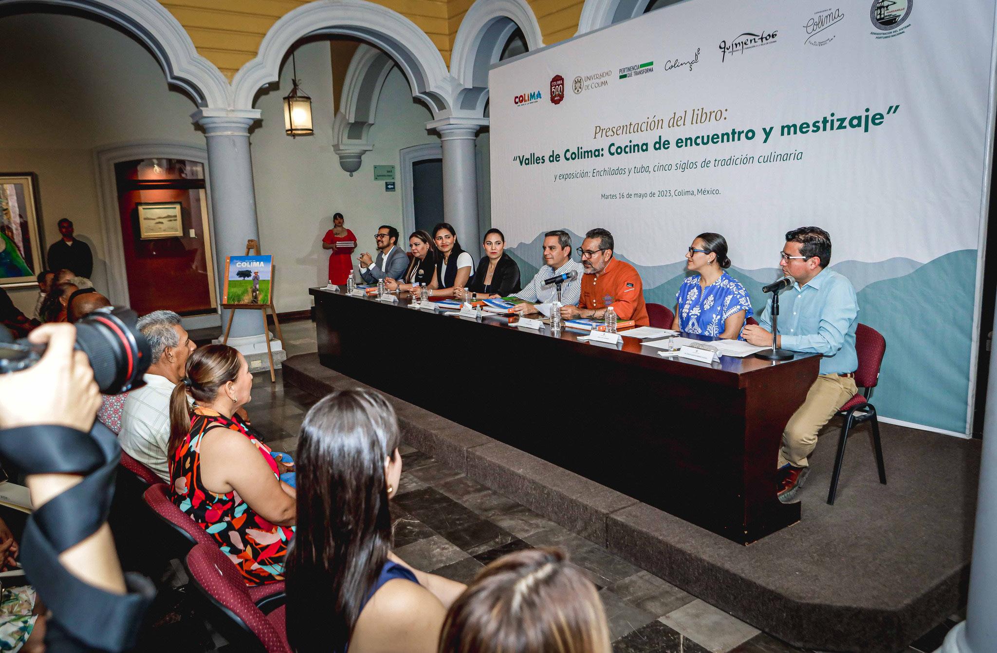 Se presentó el libro Valles de Colima, cocina de encuentro y mestizaje, del chef Nicolás Mejía Terríquez, en la Pinacoteca Universitaria, en un evento presidido por la gobernadora Indira Vizcaíno Silva y el Rector de la Universidad de Colima, Christian Jorge Torres Ortiz Zermeño.