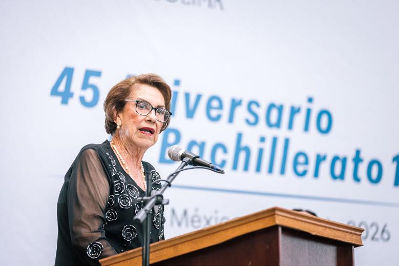 Luego de dar la bienvenida, la directora Griselda López reconoció a quienes hicieron posible ese proyecto. “En esta ocasión rendimos un sentido homenaje a quien fuera la primera directora de nuestro plantel: la maestra Ramona Carbajal Cárdenas. Su liderazgo y vocación fueron fundamentales para sentar las bases de lo que hoy es nuestro bachillerato. Gracias a su esfuerzo y a las numerosas personas que la acompañaron en ese camino, hoy contamos con un bachillerato que ha formado a generaciones de jóvenes y que sigue siendo un espacio de crecimiento, aprendizaje y formación. A lo largo de estos 45 años hemos avanzado, hemos aprendido y hemos construido una comunidad sólida”, dijo.