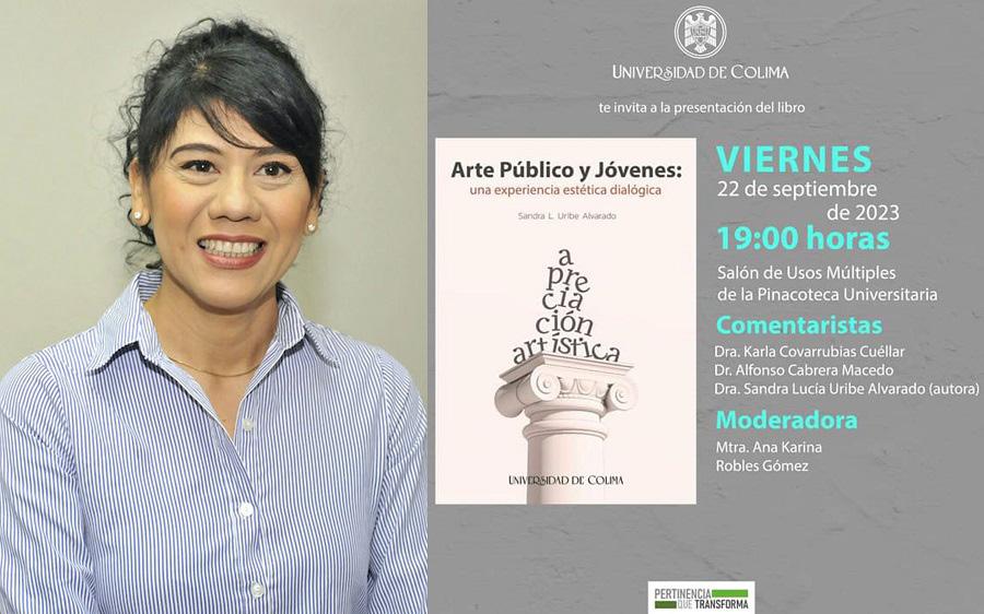 En la investigación “observamos que los jóvenes reconocieron un gusto estético y valoraron la calidad de la obra. Su experiencia etnográfica enriqueció detalles antes no reconocidos. Sabemos que el arte público puede generar controversias por los gustos heterogéneos de los ciudadanos, por ello, considero necesario fortalecer una cultura de apreciación artística para enriquecer nuestro propio conocimiento y sentido del arte público”. Participarán como comentaristas los académicos universitarios Karla Covarrubias Cuéllar y Alfonso Cabrera Macedo. La actividad estará abierta al público en general. Sandra Uribe Alvarado trabaja la línea de las artes visuales en la investigación científica. Ha participado en eventos de investigación a nivel nacional e internacional con ponencias sobre arte urbano, percepción y apreciación social del arte. Es docente, gestora y curadora en la Universidad de Colima. Como artista plástica ha participado en exposiciones de pintura de manera individual y colectiva no sólo en el ámbito local y nacional, sino también internacional.