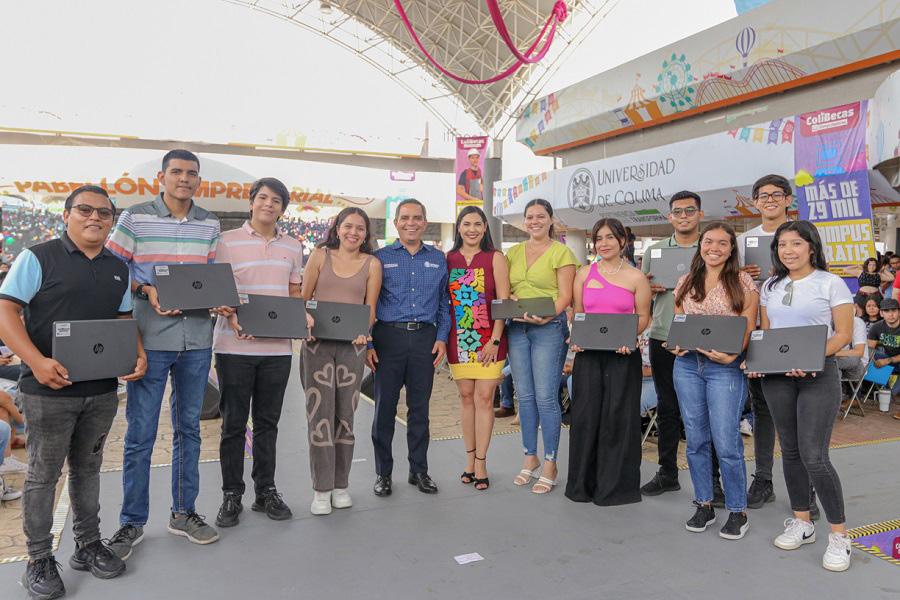 Este miércoles (20), a las 8 de la mañana y una de la tarde, se realizaron 2 entregas más del programa ColiBecas Computadoras, a estudiantes de educación superior de la Universidad de Colima, en los terrenos de la Feria. En esta ocasión, recibieron su equipo las y los alumnos del Campus Coquimatlán, de las facultades de Ciencias Químicas, Arquitectura y Diseño, de Ingeniería Mecánica y Eléctrica e Ingeniería Civil.