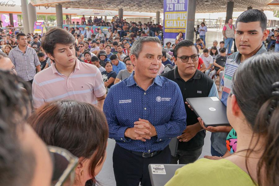 noció el esfuerzo y compromiso del Gobierno del estado; “cuando uno se encuentra en la vida pública, un tema complicado es en qué y cómo hacer uso de los recursos públicos; en ese sentido, se tiene que ser absolutamente responsable en el manejo de recursos y destinarlos a lo que se considera que será más útil para la población y que tendrá más impactos positivos. Así es como se construye este programa con el que, de manera universal, todas y todos los estudiantes del nivel superior de instituciones públicas están recibiendo una computadora”.