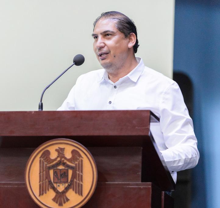Acompañaron al Rector en el presídium: Joel Nino Jr., secretario general; Érica Ulibarri, coordinadora general Administrativa y Financiera; Susana Preciado, coordinadora general de Docencia; Ana Lilia Moreno, directora general de Servicios Universitarios; y Camilo García, presidente de la FEC.