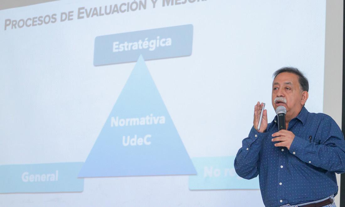Monroy Galindo detalló que la UdeC creó un comité para coordinar el proceso de autoevaluación, en el que participan representantes de todas las áreas de la institución. “Los lineamientos del SEAES le dan un nuevo significado al proceso de evaluación y mejora continua. El reporte debe incluir 3 componentes: Qué hace la Universidad, cómo lo hace y por último debe hacer un análisis de esos resultados comparados con los indicadores del Sistema”.