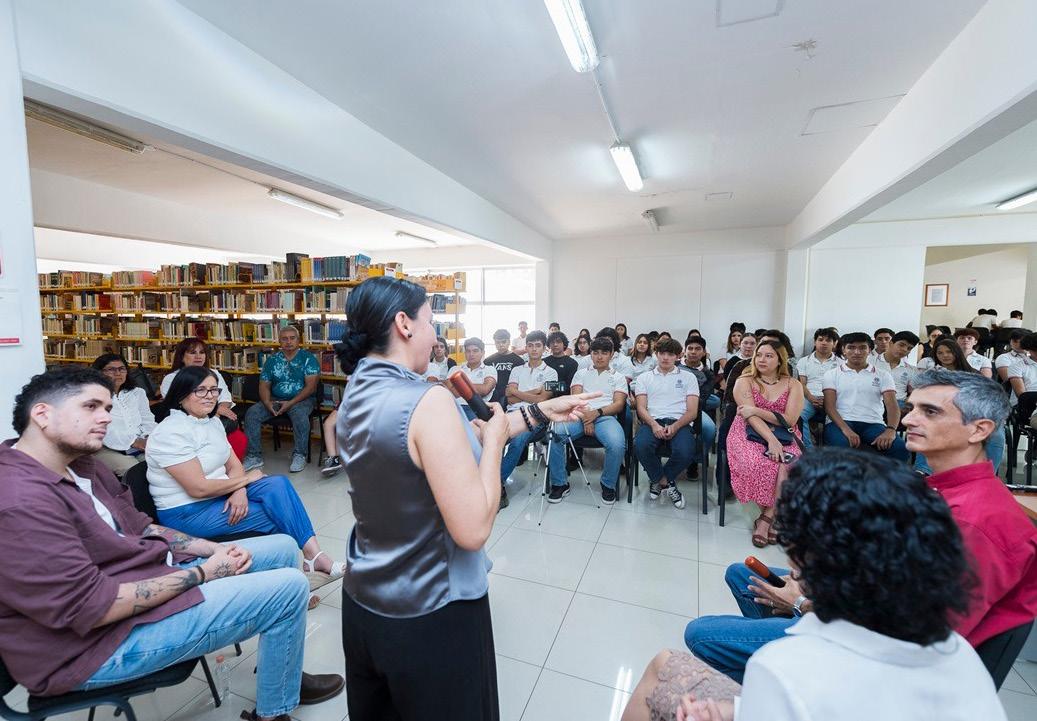 Como responsable de la Biblioteca del Campus Norte, Flores Muñoz habló del constante trabajo que realizan en este lugar para apoyar el desarrollo de habilidades, de herramientas para gestionar la investigación, cursos para crear licencias de algún trabajo de investigación y trabajos para reconocer a quienes han creado contenido. En la charla también estuvieron el director general de Tecnologías Informacionales, Alejandro Sánchez, y la directora general de Publicaciones, Karina Robles, quienes aportaron datos y rutas para los bachilleres interesados en la protección de sus creaciones literarias y cómo identificar las vías seguras y confiables para publicar sus primeras obras.