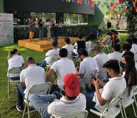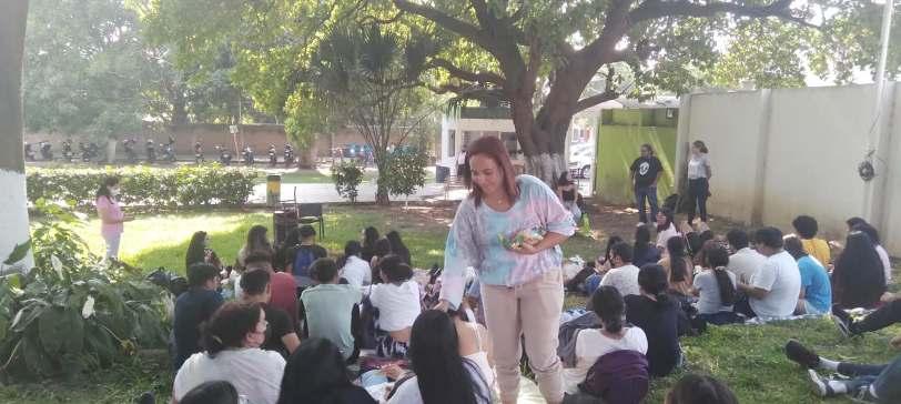 En el Foro Altexto 2022 itinerante en el campus Villa de Álvarez delaUniversidaddeColima,laMaestraCarmenSolorioprotagonizóla lectura dramatizada de la colección“El Rapidín”, en la que participaron integrantesdelTallerExperimentaldeTeatroUniversitario.
