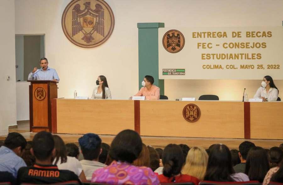 nte la disminución de apoyos económicos para quienes cursan la licenciatura, la Federación de Estudiantes Colimenses (FEC) desarrolló un programa piloto en 14 planteles de educación superior de Colima y Villa de Álvarez, a cargo de los consejos estudiantiles, con el que recabaron recursos para beneficiar a 108 estudiantes con una beca para que puedan continuar sus estudios.