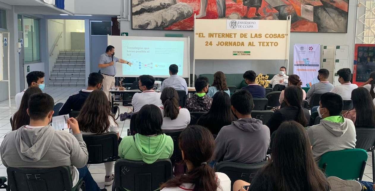 El doctor Armando RománGallardoimpartió en la explanada de la Facultad de Economía, en el campus de Villa de ÁlvarezdelaUniversidad de Colima, la charla “El internet de las cosas”, como parte de la serie Ciencia sobre la Mesa, una actividad de nuestra fiesta de los libros, Altexto2022.