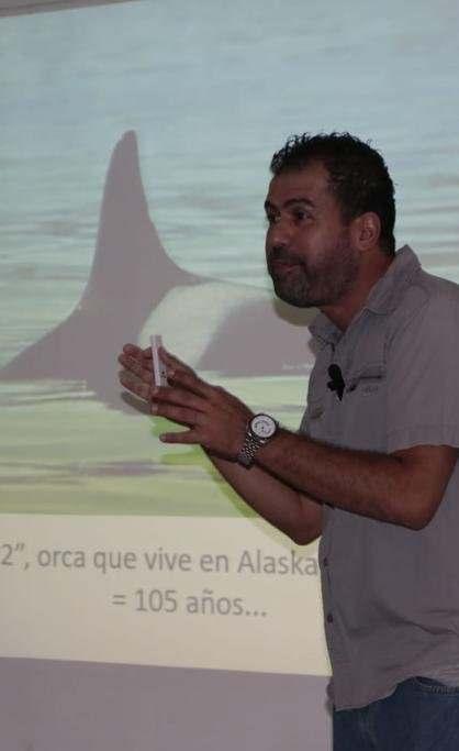 El doctor en Ciencias Marinas, Christian Daniel Ortega Ortiz, impartió en el Centro de Tecnología Educativa del campus El Naranjp, la Delegación de Manzanillo de la Universidad de Colima, la charla “Los pandas del mar, los más inteligentesdepredadores:las orcasdelmar”,enelmarcode la Feria de los Libros Altexto 2022.