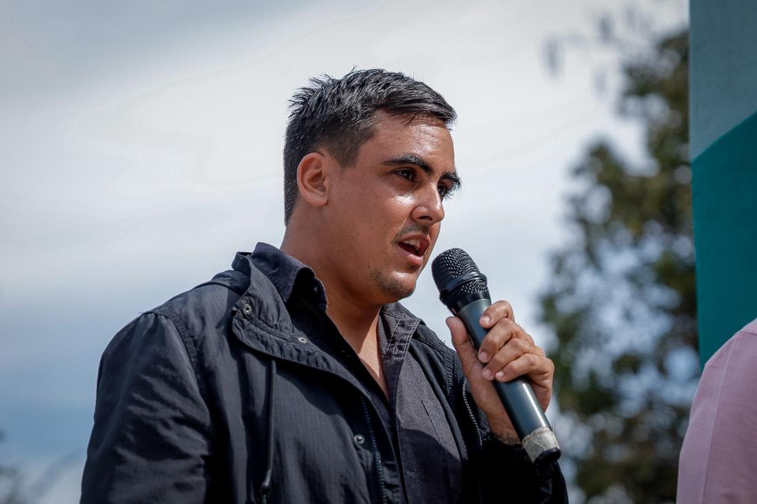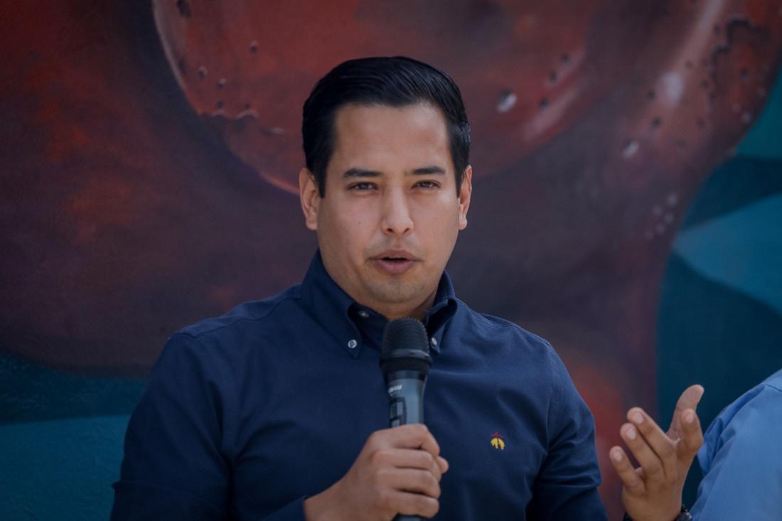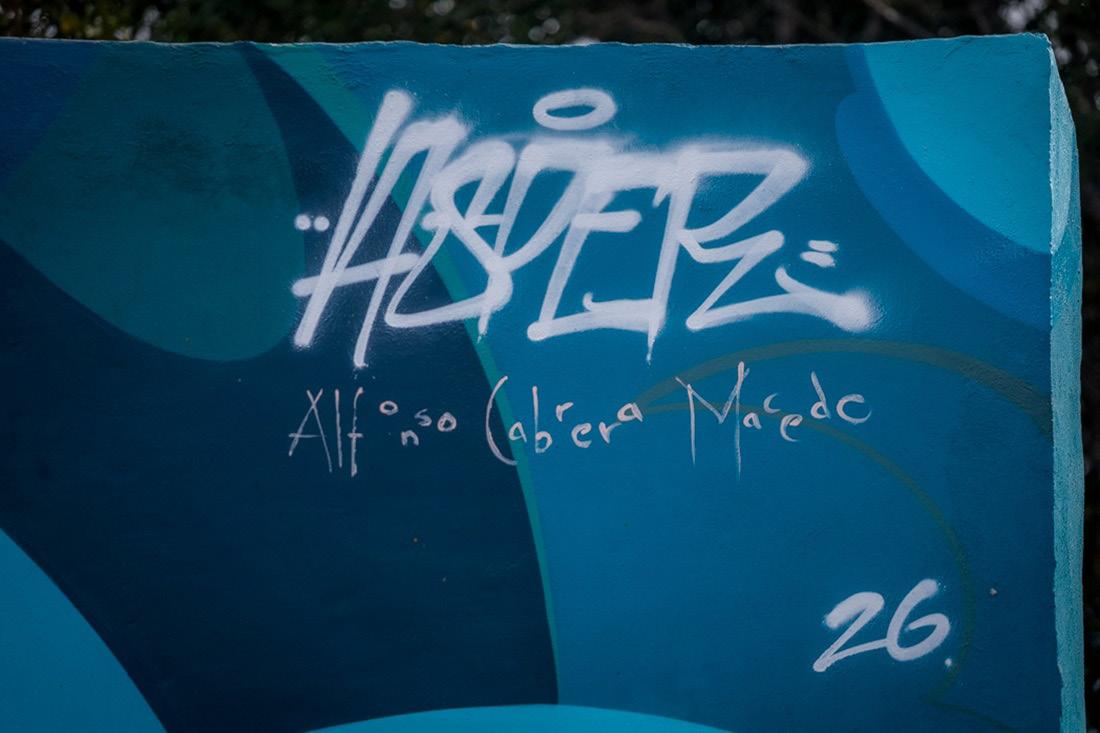 morano, secretario general del Sutuc; Alfonso Cabrera, director de la Facultad de Arquitectura y Diseño; y el estudiante de Artes Visuales, Santiago Álvarez Sandoval, quien fue creador de la obra junto con Alfonso Cabrera. El Rector destacó el orgullo de ser universitario, la identidad que se demuestra en el mural. “Todos los que estamos aquí decimos: ‘soy orgu-