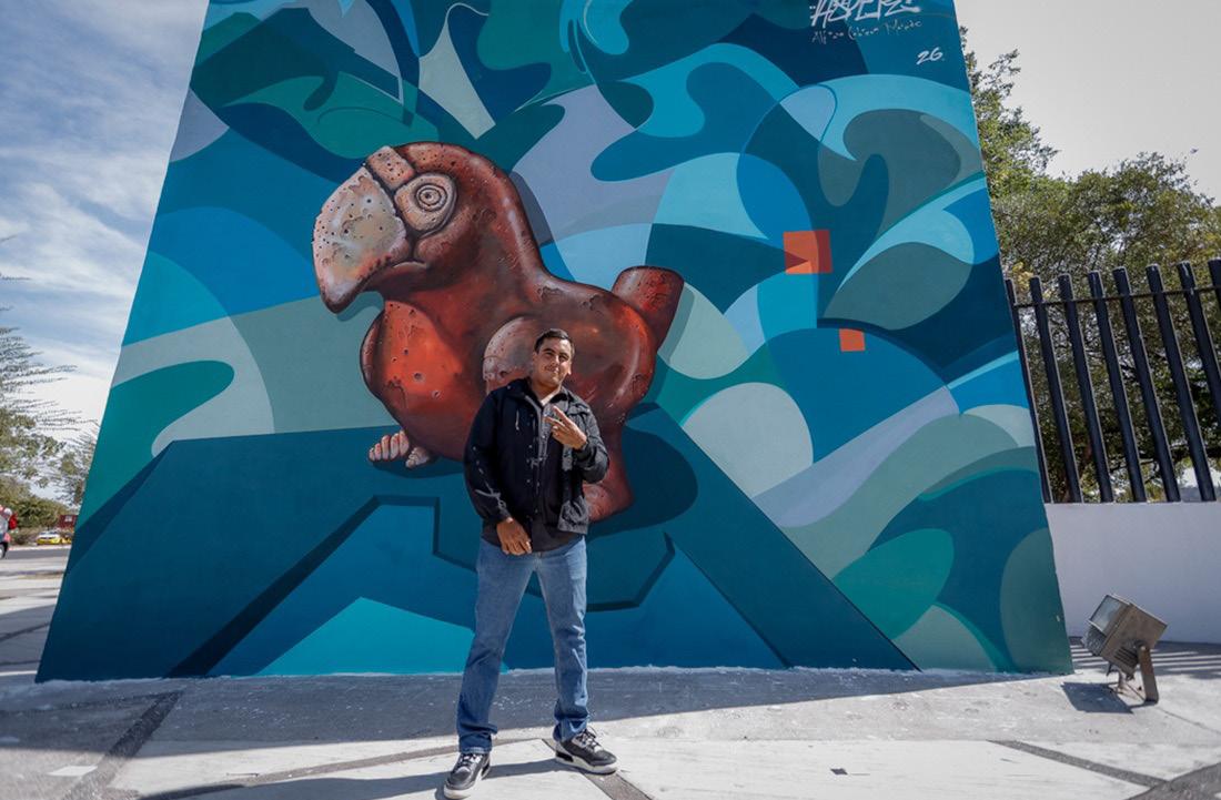 El estudiante -conocido como Asper- dijo sentirse muy orgulloso de sus raíces. “Quise pintar este símbolo, que también es la imagen de nuestra Alma Mater: el loro. Quise plasmarla aquí para que fuera la entrada, al lado de los colosos que tenemos al fondo, los volcanes”.
