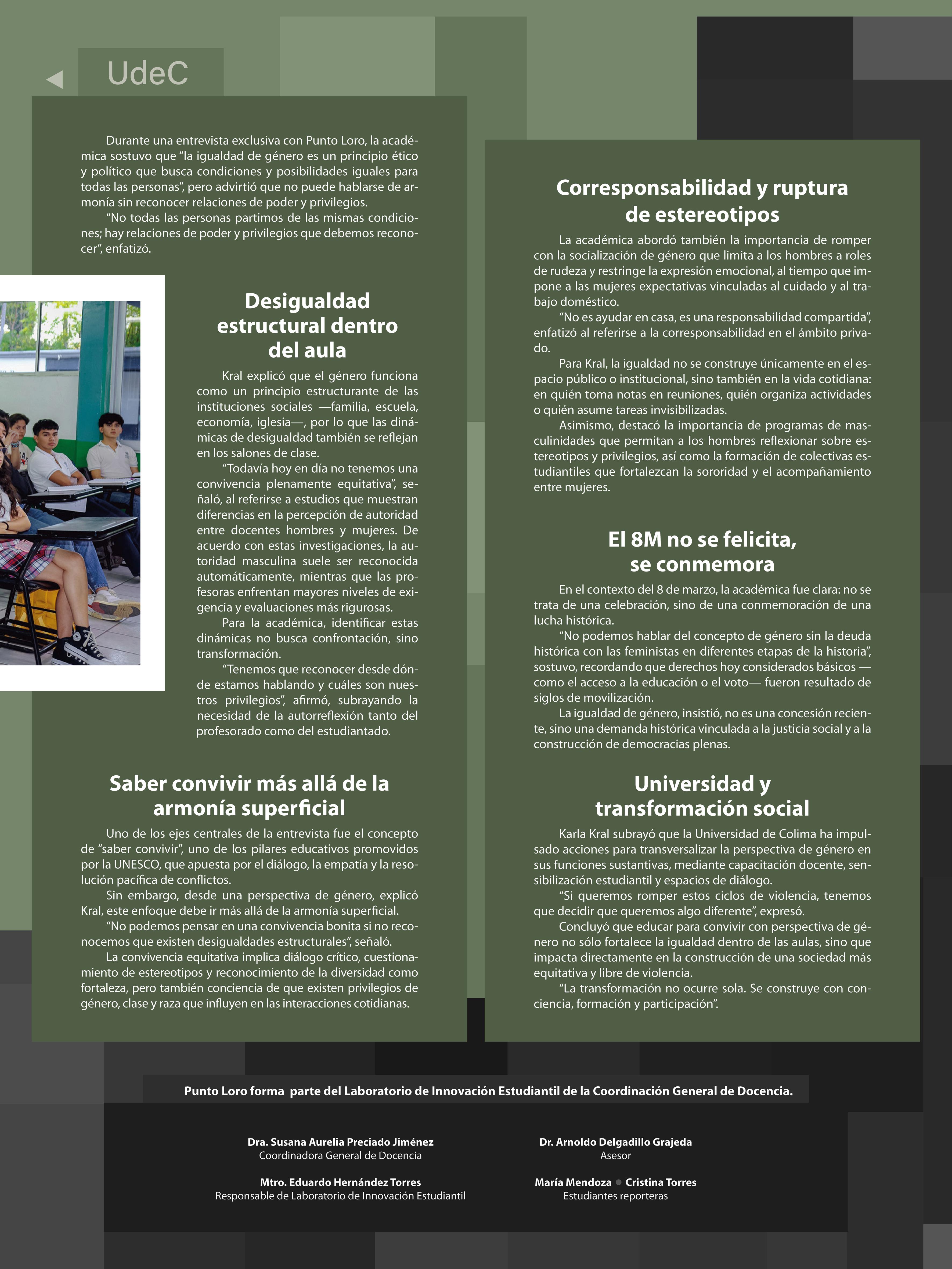 En un contexto social donde la violencia y la polarización parecen avanzar en distintos ámbitos de la vida pública, las instituciones educativas tienen la responsabilidad de ofrecer algo más que formación académica: deben convertirse en espacios que promuevan valores, convivencia y sentido de comunidad. Bajo esa premisa, nuestra iniciativa “Territorio Loro, Territorio de Paz”, adquiere un significado especial para la vida universitaria y para la sociedad colimense.