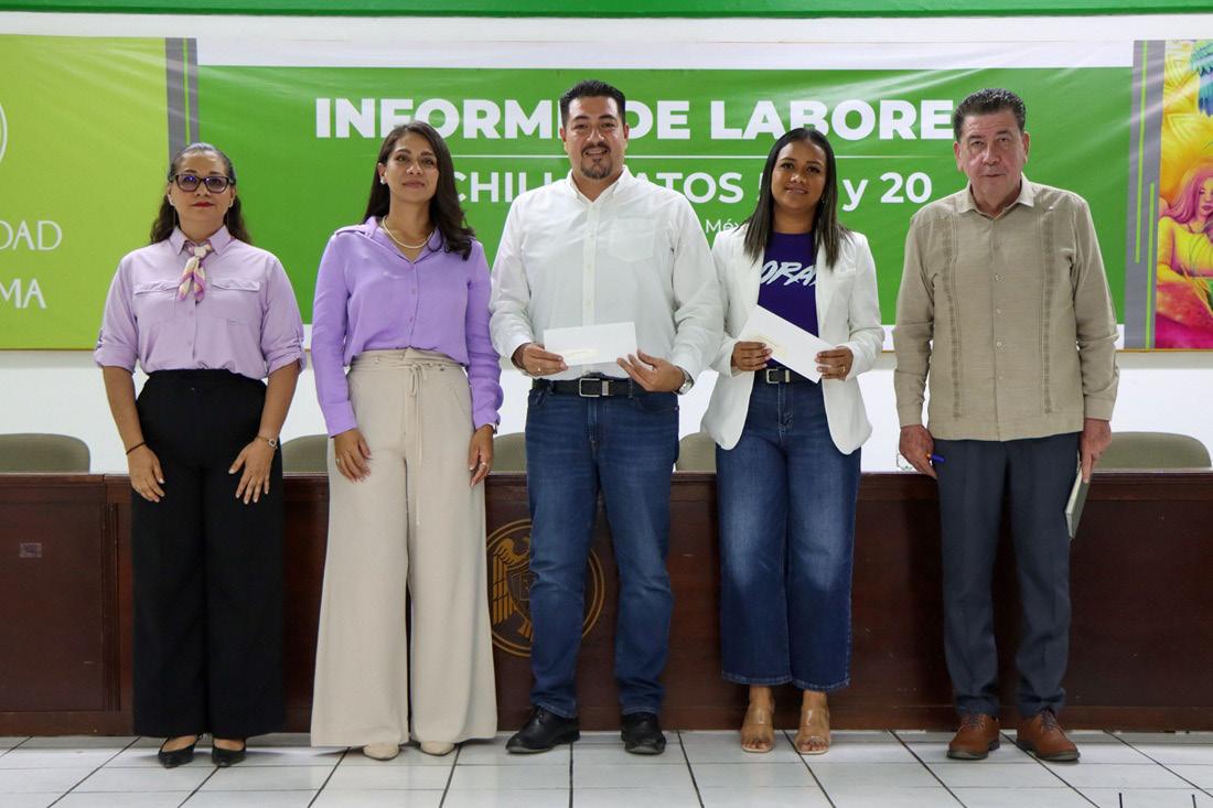 que deba ser. Cuente conmigo y estoy aquí para sumar, para aprender de la mano de ustedes”, dijo Selene Solano. En su turno, Ana Vázquez dijo que trabajará de manera ardua para corresponder la confianza. En Eventos Especiales y Logística, dijo, “somos un equipo muy comprometido; todas mis compañeras saben trabajar a la par, tenemos mucha armonía y eso ayuda a que el trabajo fluya”. Priscilia Juliana Álvarez Gutiérrez, directora general de Recursos Humanos; Joel Nino Jr., secretario general de la UdeC; y Francisco Coello Aguilar, secretario privado del
