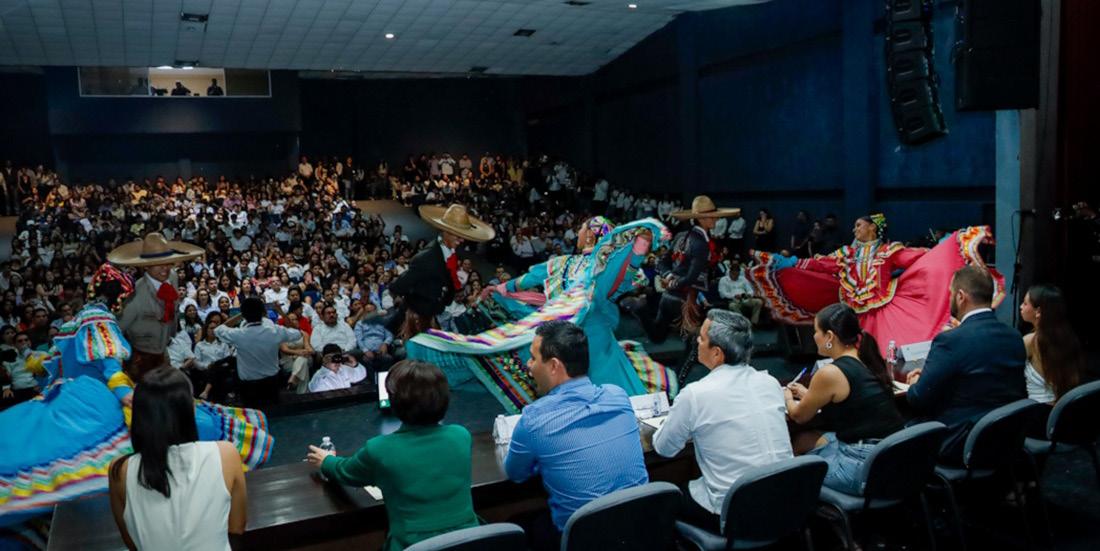 Finalmente, reiteró la disposición del Gobierno estatal para seguir trabajando de manera coordinada con las y los estudiantes, “impulsando políticas públicas que fortalezcan la educación, amplíen las oportunidades y garanticen espacios de participación para las juventudes”. El momento artístico estuvo a cargo del Ballet Folklórico y el Mariachi Universidad de Colima, con el cuadro de Sones de Jalisco