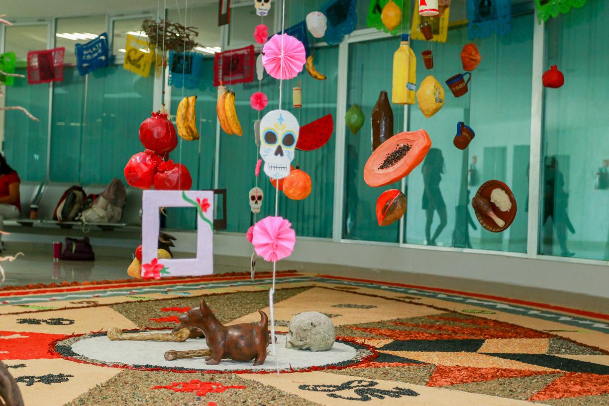 En esta exposición, agregó el estudiante Daniel González, se retoma la idea de la ofrenda flotante. “Se incluyen elementos que simulan comida y bebidas, todo hecho de cartonería por estudiantes de tercer semestre y voluntarios, mientras que el papel picado está hecho por nosotros”.