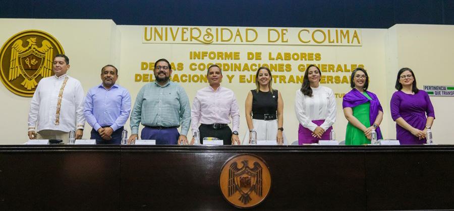 Como parte de la segunda jornada de rendición de cuentas de las Coordinaciones Generales, Dependencias y Ejes Transversales de la Universidad de Colima, Joel Nino Jr., secretario general, y Erika Ulibarri Ireta, coordinadora general Administrativa y Financiera, rindieron su informe. En ellos, destacaron la creación del Sistema Universitario de Archivos, el Programa de Protección Civil Universitario, así como el cumplimiento de las obligaciones contractuales, la rendición de cuentas y la transparencia en los procesos administrativos, respectivamente.