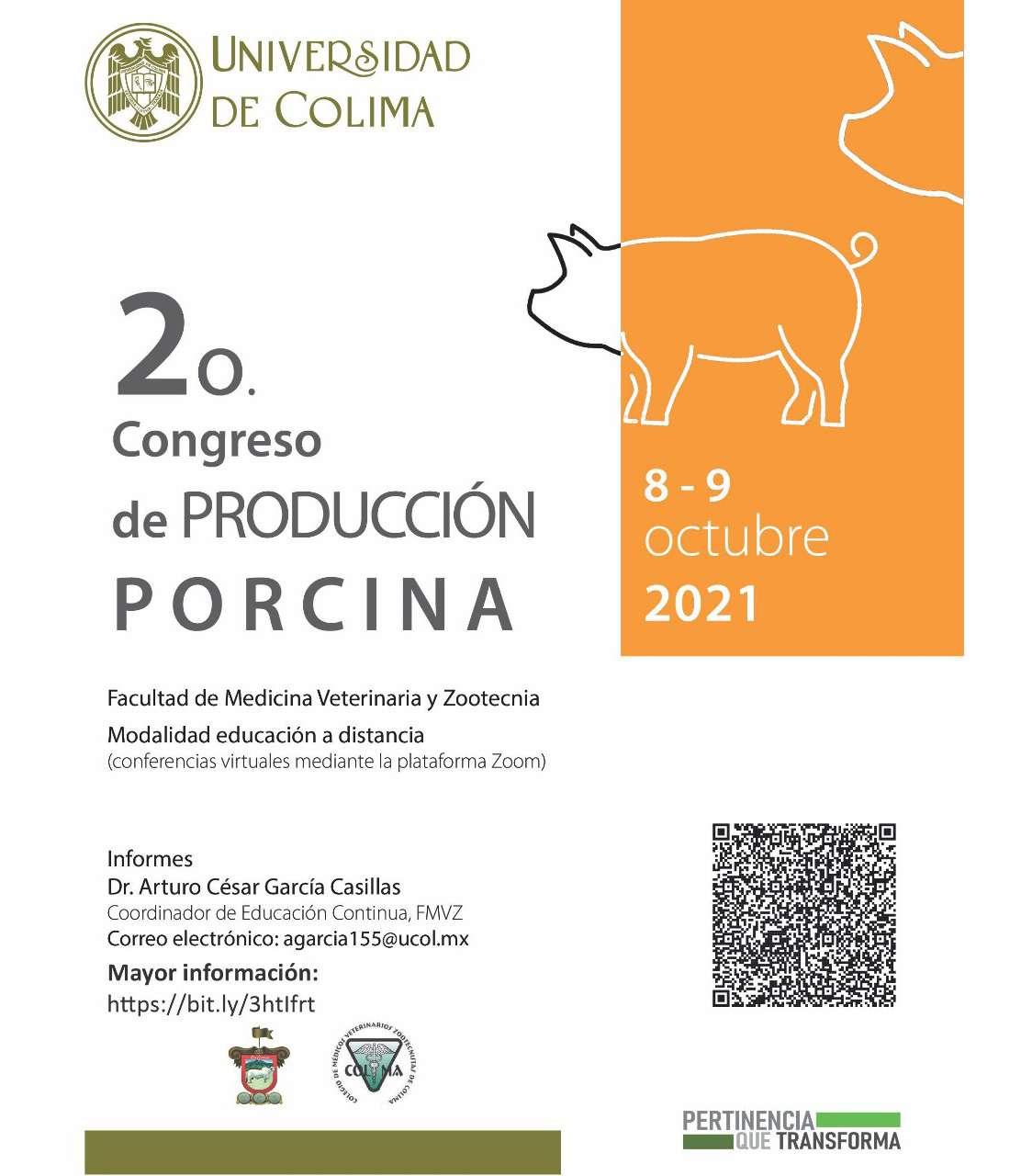 La Facultad de Medicina Veterinaria y Zootecnia (FMVZ) de la Universidad de Colima, la Red de Avances en la Investigación Agropecuaria en México y la Escuela Superior de Ciencias Agropecuarias de la Universidad de Campeche, realizarán el II Congreso Virtual de Producción Porcina, dirigido a estudiantes, profesionistas del área y público en general, este viernes 8 y sábado 9 de octubre.