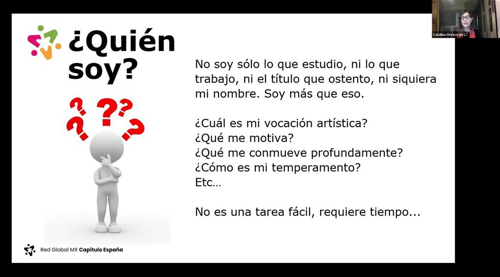En el ámbito artístico, dijo Catalina Orozco de la Torre, siempre surge la pregunta: “¿Quién soy?”, y aunque pareciera un simple cuestionamiento, “la respuesta va más allá de una profesión o disciplina; no basta con decir ‘soy pintora o artista’; la verdadera vocación implica un proceso constante de introspección: identificar qué obras conmueven, qué técnicas atraen y qué motivaciones impulsan la creación”.