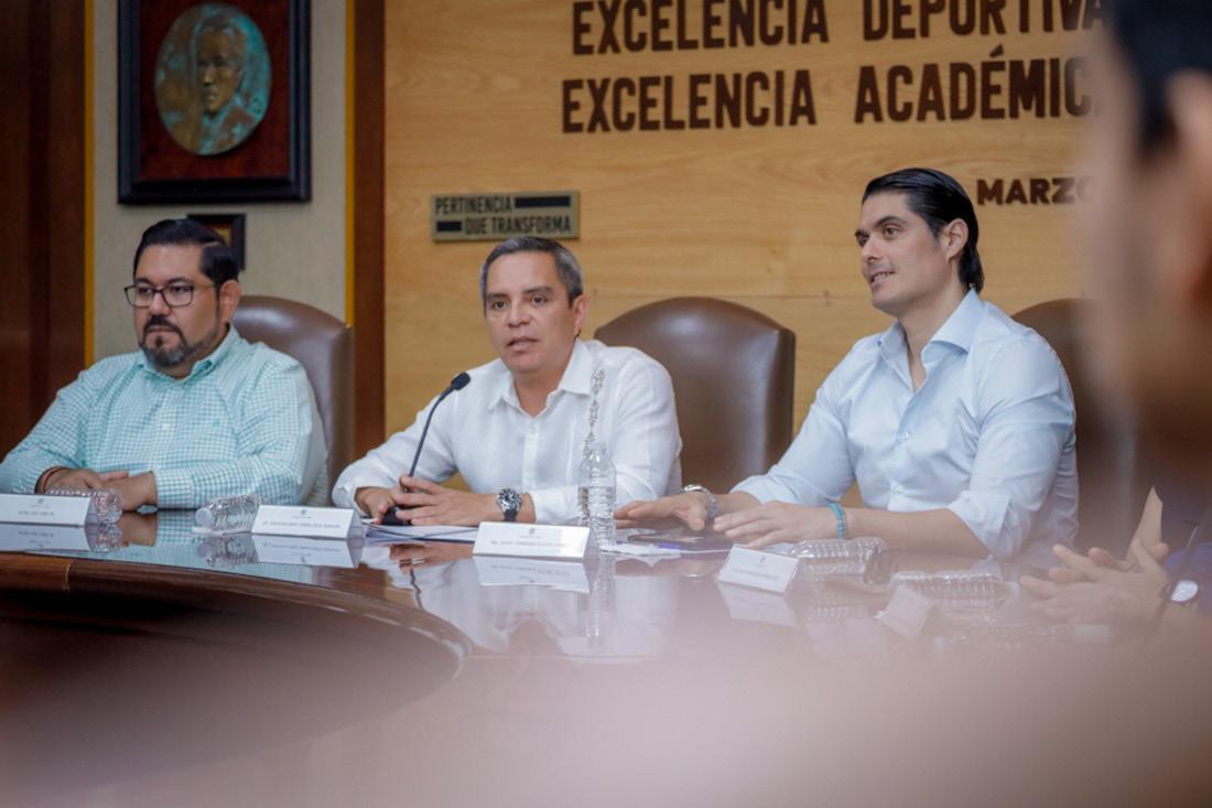 Erika Mercedes Ulibarri Ireta, coordinadora general Administrativa y Financiera; Susana Aurelia Preciado Jiménez, coordinadora general de Docencia; Alejandro Novela Castañeda, presidente de la FEC; y Camilo Alejandro García Morales, director general de Servicios Universitarios.