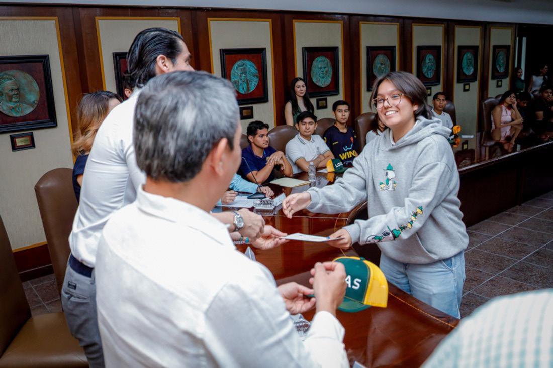 Por su parte, Daniel Gudiño se dijo contento y satisfecho de poder ayudar, con esta beca, a construir futuros: “Que se decidan a ser mejores estudiantes, hacer las cosas que deben hacer y que se crean parte de la solución y de la mejora que podemos hacer como país, como estado, como municipio y en cada lugar donde estemos. Lograr algo mejor no solamente para ustedes, sino para su entorno. Eso crea valor y riqueza. Sigan trabajando, ustedes son parte de cómo sí es posible mejorar”.