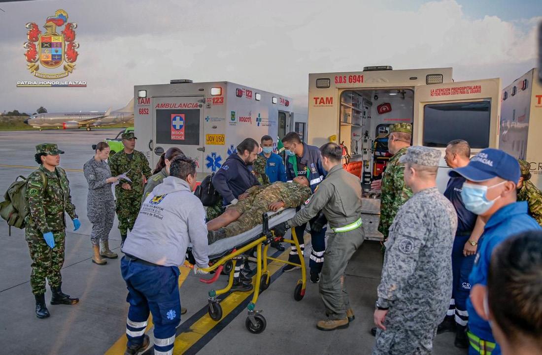 La mayoría de los heridos fueron trasladados a Bogotá, donde 23 permanecen ingresados en el Hospital Militar Central y 26 en el Batallón de Sanidad Militar, mientras que los 8 restantes están en 2 clínicas de Florencia, capital del departamento de Caquetá.